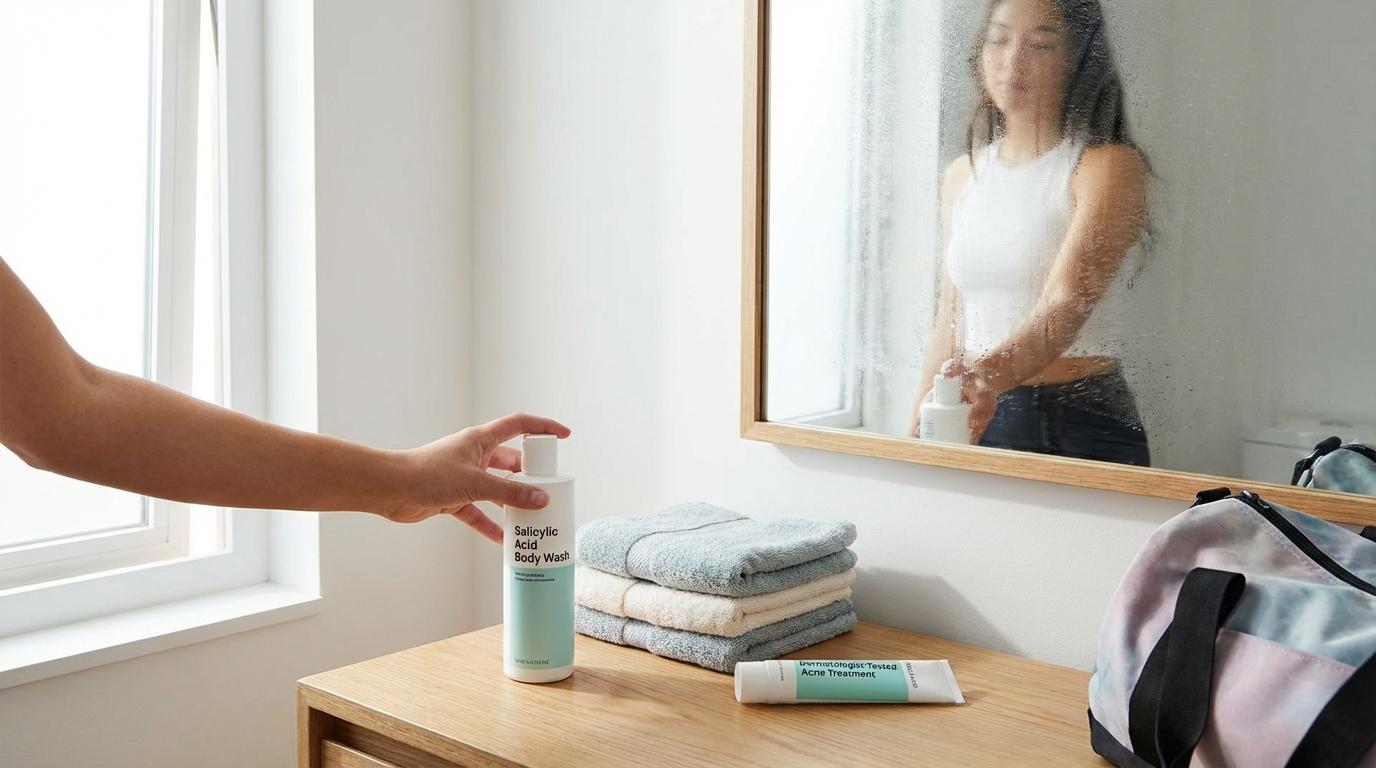 Skip body washes with heavy fragrances, sulfates, and comedogenic oils. These can irritate your skin or clog your pores further. Look for products labeled “non-comedogenic” or “oil-free.”