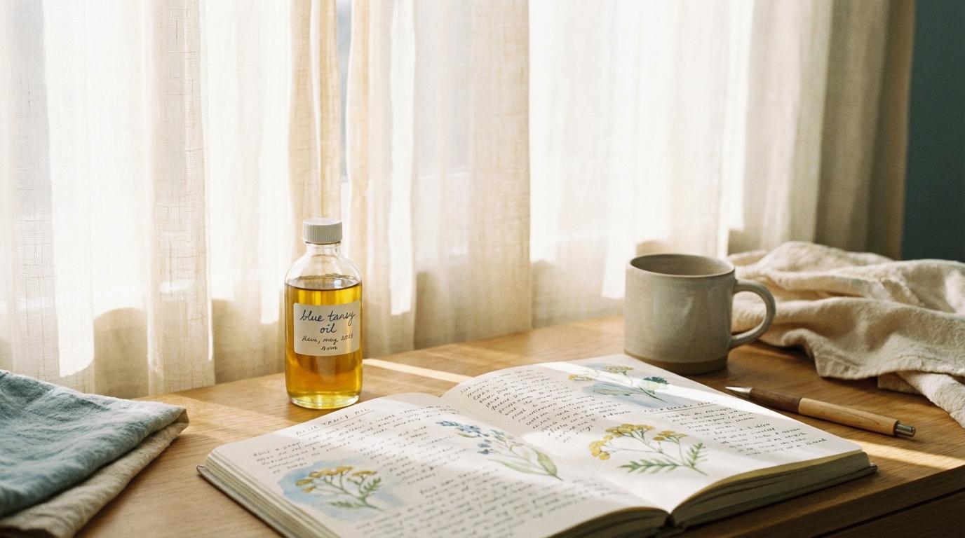 Soothing sensitized skin: After over-exfoliating, sun exposure, or harsh treatment, blue tansy oil can help calm things down. Its anti-inflammatory action pairs well with repair-focused routines when your skin barrier is compromised.
