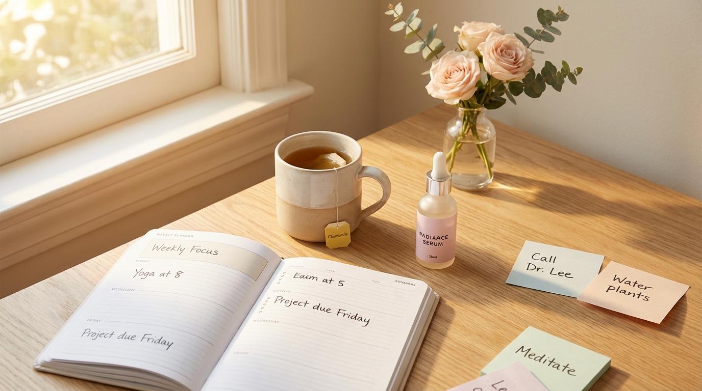 Before purchasing anything new or restructuring what you already do, spend a week noticing your mornings and evenings. Not the ideal versions, but the real ones. The mornings where you hit snooze twice. The evenings when you collapse into bed barely able to brush your teeth. The lazy Sundays when you have more space. All of these matter when building a routine that actually works.