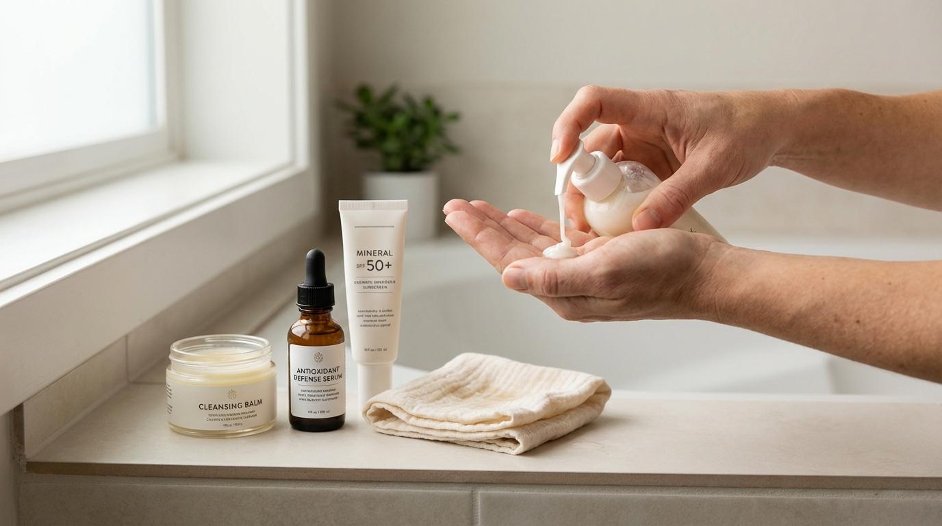 - Treatment serums (retinol, peptides, or additional antioxidants)