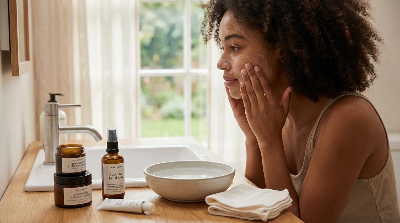 One product worth considering: cleansers with centella asiatica or green tea extract have anti-inflammatory properties that can help calm skin while cleaning it.