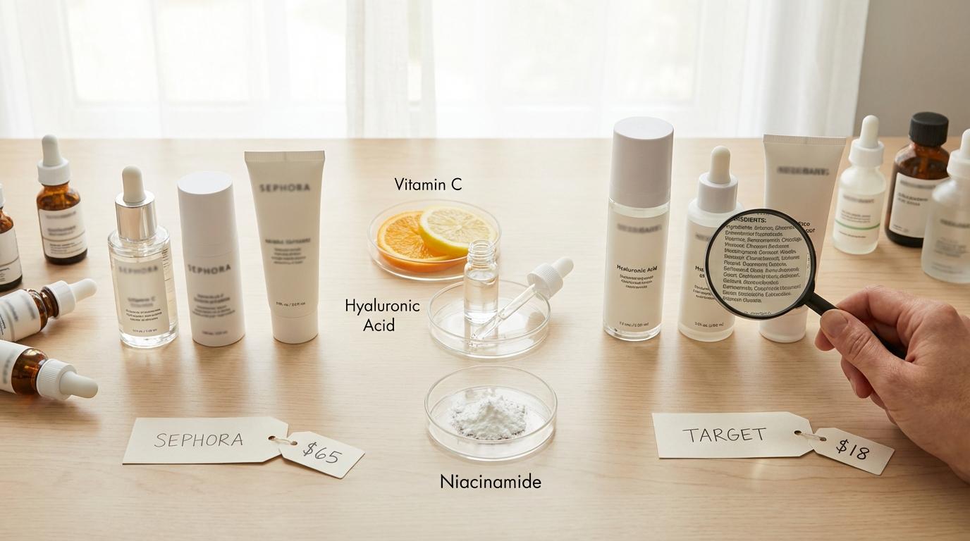 Target carries products with identical active ingredients to Sephora at a fraction of the price. The main differences are usually packaging aesthetics, texture preferences, and the shopping experience itself. None of those change what the ingredients do on your skin.