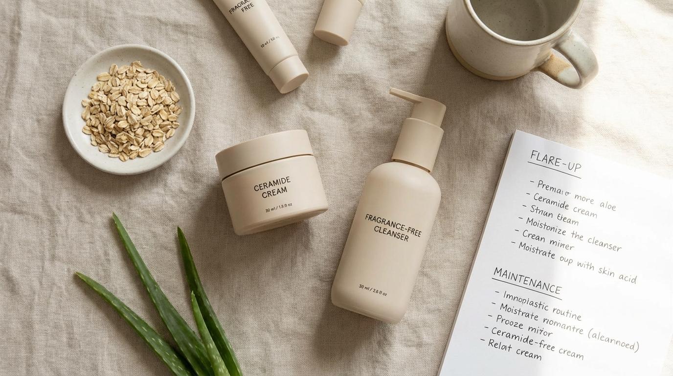 Simplify to Two Products: A gentle cleanser and a thick, bland moisturizer. That is it. Your skin is inflamed and reactive. Even products that normally work fine might cause problems during a flare.