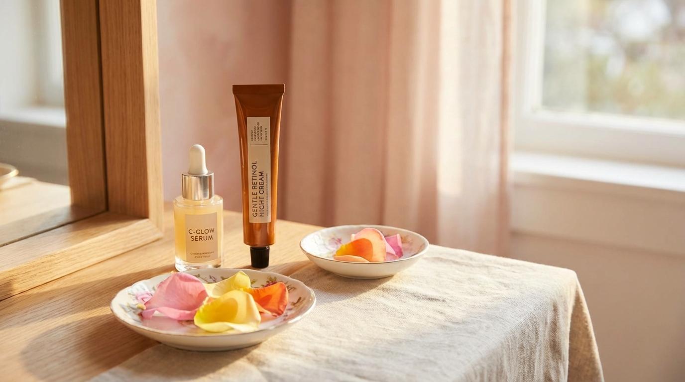 Mornings, I use a vitamin C serum with ethyl ascorbic acid (more stable, less irritating), followed by sunscreen. Evenings, I use retinol two to three times a week, depending on how my skin is feeling. On retinol nights, I sometimes skip the vitamin C entirely, but other times I will use a gentler vitamin C derivative underneath my moisturizer. No burning, no peeling, no drama.